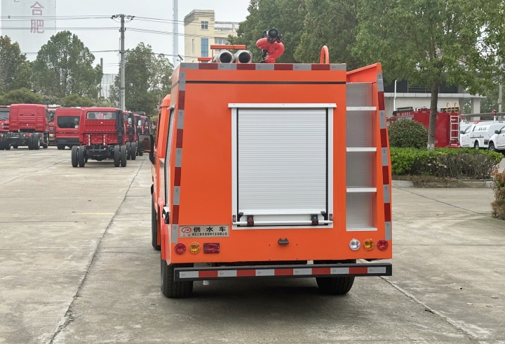 ±êÅä1.92Á¢·½Ãײ»Ðâ¸ÖË®¹Þ£¬ÔØË®Á¿´ï1.8¶Ö£¬´îÅä¸ßѹˮǹ¼°¶à¼¶Ôöѹˮ±Ã£¬ÅçÉä¾àÀ볬50Ãס£