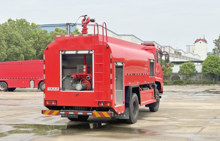 类似车型(如东风四驱灰迷彩消防客车)用户提到“全驱式设计结合越野轮胎,操作便捷,脱困能力强”。动力与载液效率:搭载柴油发动机的车型(如8.5吨级)在山区和长距离任务中表现出“动力储备充足,爬坡能力稳定”,且罐体容积(8.2-8.4吨)被评价为“满足中大型火场持续供水需求”。用户对消防泵(流量40L/s)和消防炮(射程≥50米)的实战效果表示认可,认为“射程覆盖范围广,响应速度较快”。